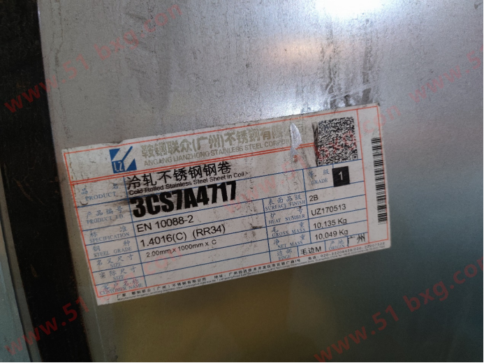 據本網跟進了解,此為鋼廠出口歐洲的430材料。在產品標簽的標準一欄也是寫了EN 10088-2字樣。